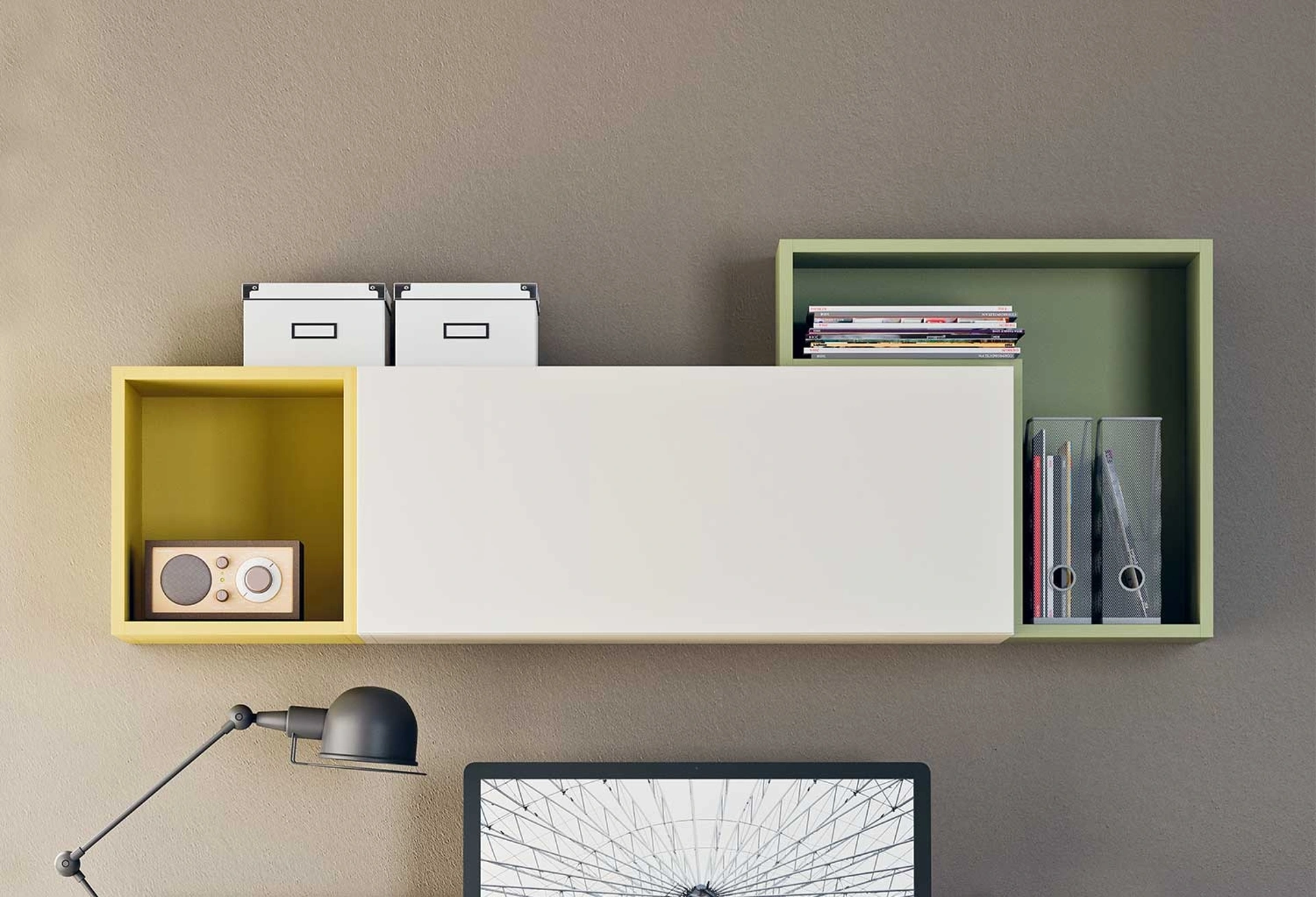 Nel nostro punto vendita potrai visionare in prima persona l'eccellenza dei modelli di mensole moderni in laccato del marchio, proprio come questa soluzione in foto. Molto versatili e multifunzionali, i Complementi moderni in laccato assolvono a funzioni disparate: ultimano le doti di praticità e l'estetica dell'ambiente. Le composizioni arredative di grande valore estetico del marchio Clever rendono belli l'habitat con i loro colori e gusto, ricreando particolari atmosfere arredative. Complementi e mensole personalizzano l'arredo di casa, occupando lo spazio in modo utile e rendendolo assai funzionale e bello da vedere. Mensola Box di Clever in laccato: aggiungerà personalità e charme a un locale ammobiliato con mobili ed elementi accessori dai richiami moderni.