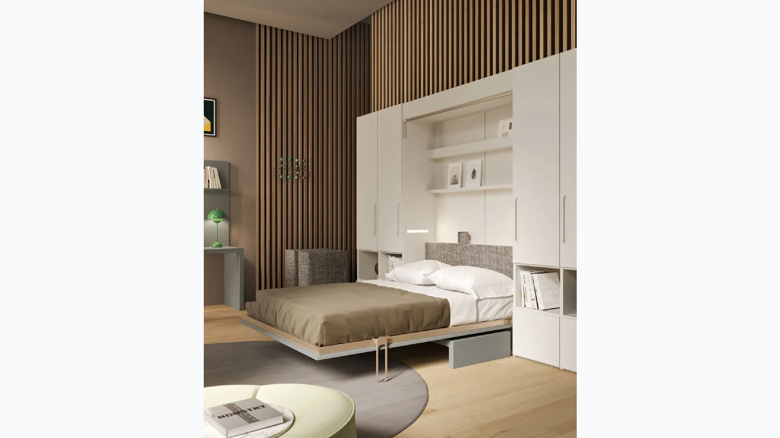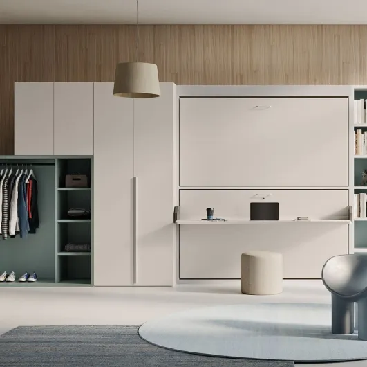 Con i Letti a scomparsa salvaspazio in laccato opaco di Clever, tra cui questo modello di tendenza, avrai nella tua zona notte un arredo bello e assai funzionale. La zona notte è il luogo più intimo di casa, deputato al riposo quotidiano, perciò gli arredamenti devono sempre creare un'atmosfera distensiva. In una zona notte di piccola metratura ha la sua giusta sede il Letto matrimoniale a scomparsa Im 22 06 Shin Sofa di Clever, progettato per garantire il sonno più profondo e il giusto supporto ad ognuno. La giusta tipologia di letto deve seguire il tuo gusto personale e una certa coerenza di stile, conta solo il fatto che si adatti alle dimensioni e funzioni del locale. Nel nostro showroom potrai toccare con mano le varie proposte in laccato opaco di Clever, tra cui trovi anche modelli su misura trasformabili attuali. I prodotti costruiti in laccato opaco dal marchio offrono alla tua zona notte un tocco di stile e fascino, per uno spazio votato a un grande comfort.