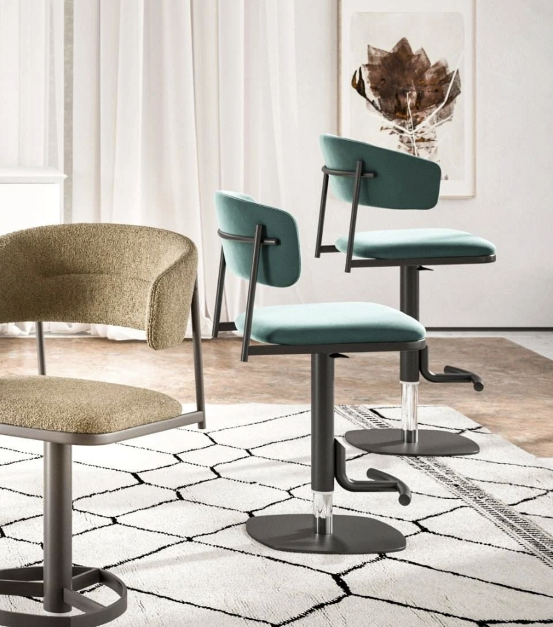 Tra i migliori brand disponibili nel nostro negozio di Arredamento Casa troverai le Sedie sgabelli da cucina più originali in commercio. In negozio presentiamo esclusivi mobili e oggetti accessori, tra cui troverai di certo la soluzione che fa al caso tuo. Le sedie moderne, sia in legno che imbottite, sono arredi complessi, definiti da una gamma praticamente infinita di cromie, forme e pattern. Contattaci e scopri di più sul modello di Sgabelli in tessuto Adam e Alida di Ozzio mostrato in foto. Una sedia in tessuto come quella qui disponibile arreda un living o una cucina di elevata qualità, ultimando gli spazi arricchendone l'estetica.
