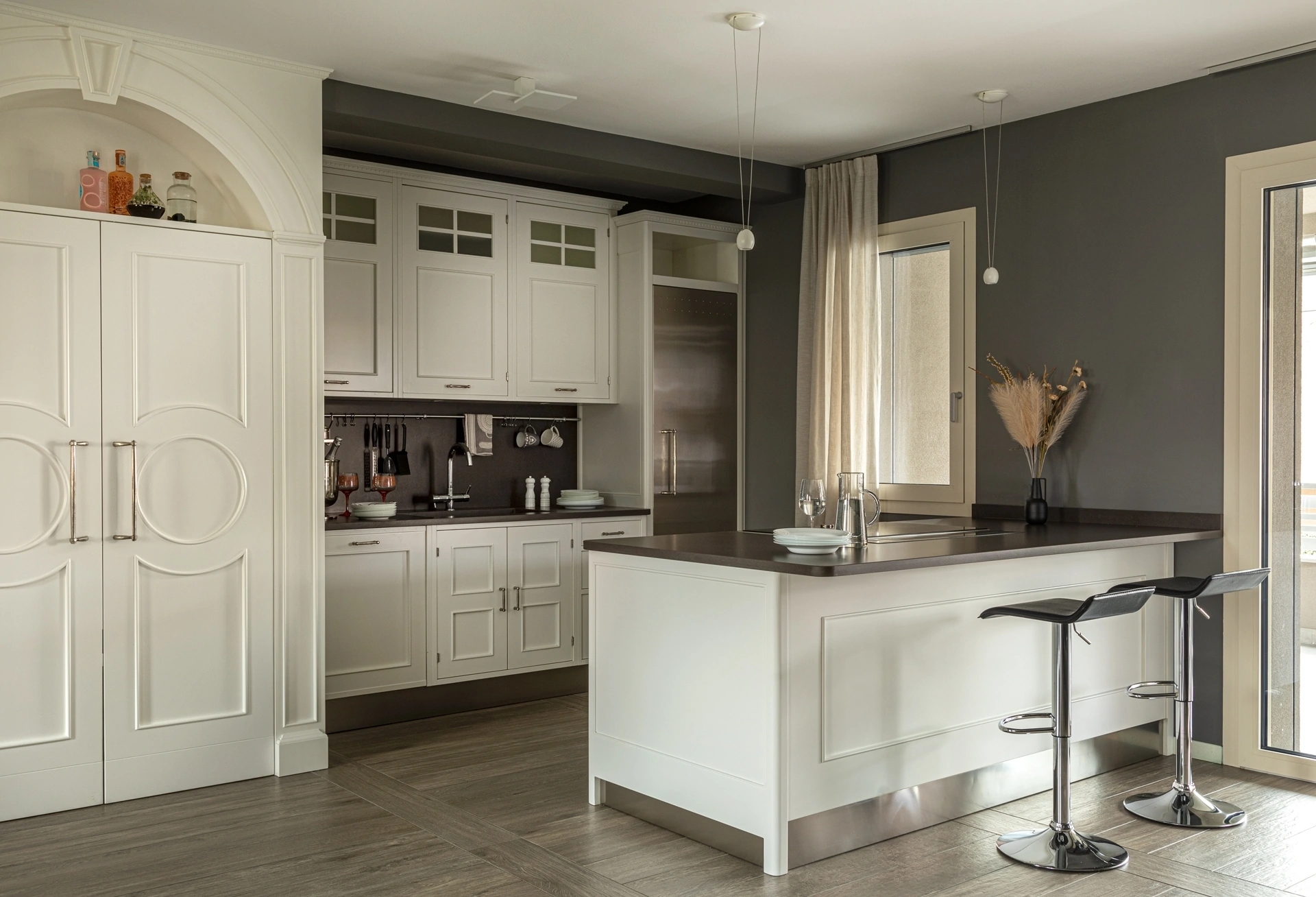 Ottimizzare gli spazi oggi è possibile grazie alla ricca linea di modelli con penisola di stile classico del noto e conosciuto marchio Marchi. Le composizioni in legno come quella qui visibile regalano un notevole vantaggio, quello di essere particolarmente resistenti, raffinate e facili da pulire. Le Cucine Classiche sono state progettate per assecondare tutte le esigenze abitative, hanno linee geometriche che consentono di sfruttare bene forma e dimensioni delle stanze e un appeal senza tempo.