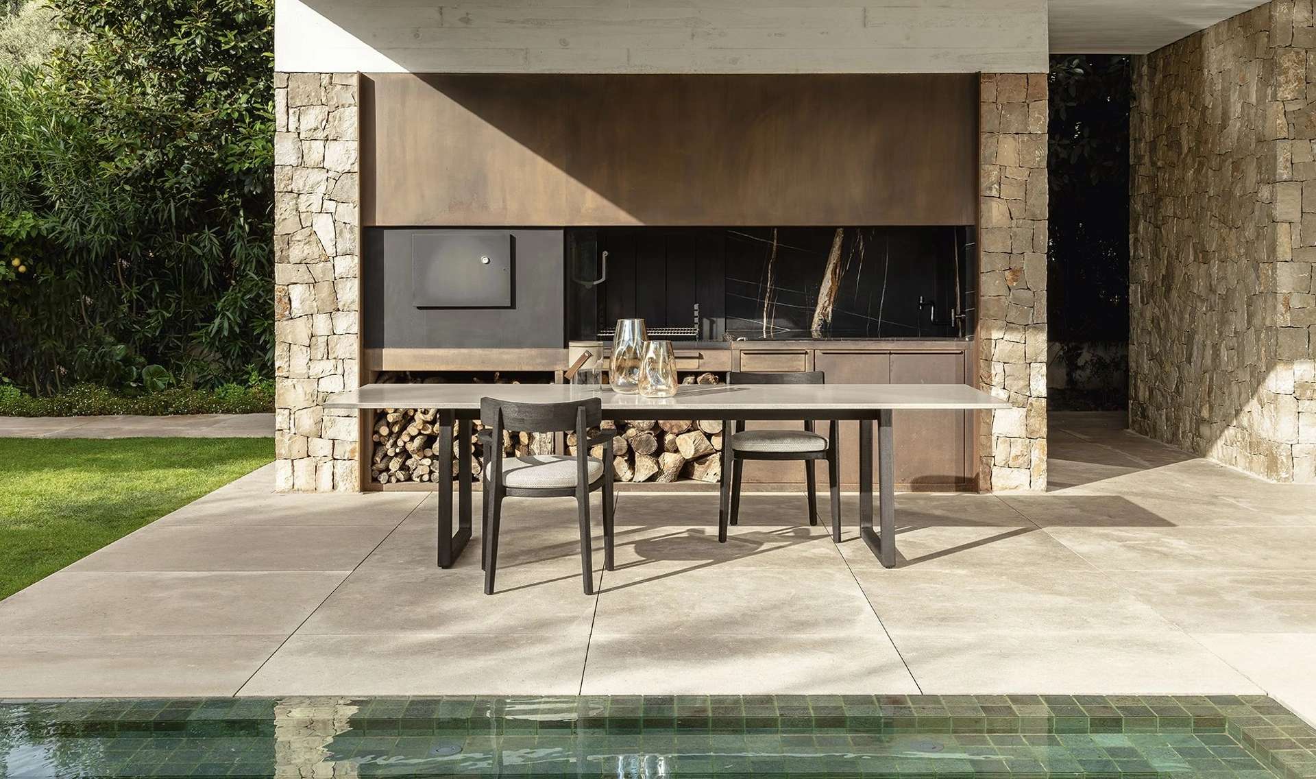 Così come negli spazi indoor, anche in giardino è possibile comunicare il proprio stile in termini di arredo, dando vita a composizioni arredative di grande valore estetico. Materiali di lunga durata e linee di tendenza contraddistinguono questo modello di tavoli da giardino in pietra di Talenti, sinonimo di qualità ed eccellenza nel campo. Divertiti a organizzare il tuo outdoor come fosse un ambiente in più di casa, scopri in negozio le soluzioni di Arredo Giardino dei più noti brand in commercio. Questa soluzione di Tavolo e Sedie Ever di Talenti ti farà ricreare un comodo soggiorno in giardino, mixando grandi doti di praticità e design. Al giorno d'oggi, anche l'outdoor è riconosciuto spazio domestico da arredare con attenzione, affinchè appaia organizzato al meglio e bello da vedere.